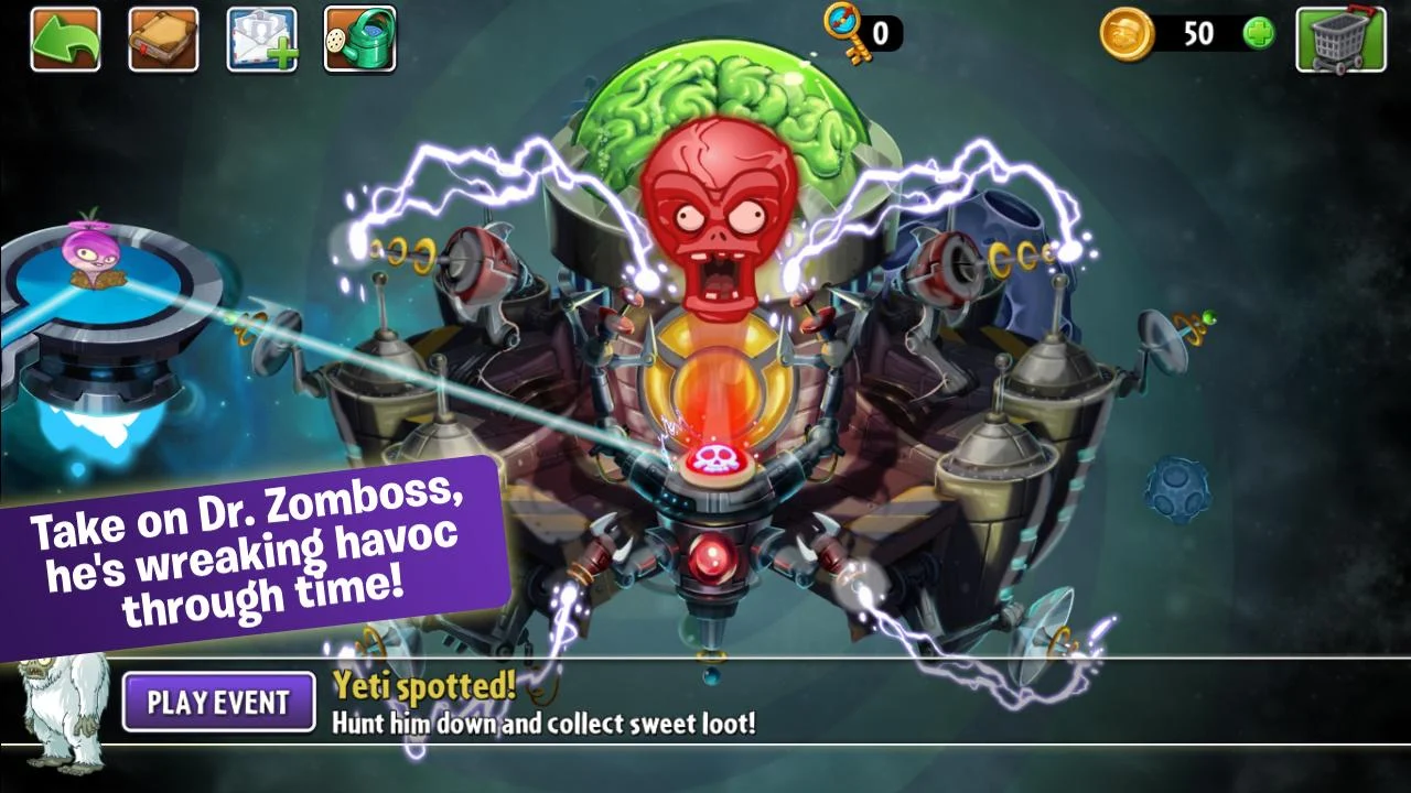 The zombies are coming… back. It’s about time! The sequel to the hit action-strategy adventure brings the fun to tablets and touchscreens. Join Crazy Dave on a crazy adventure where you’ll meet, greet and defeat legions of zombies from the dawn of time to the end of days. Amass an army of powerful new plants, supercharge them with Plant Food and power up your defenses with amazing new ways to protect your brain. And that's just the beginning! The future holds many mysteries… also zombies. Lots and lots of zombies.